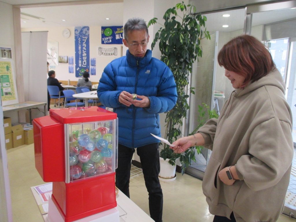 本催しは、気候変動の影響やその備え(適応策)について、子どもでも楽しく学べる「ミライ地球ガチャ」を使って学ぶとともに、「うちエコ診断」にて、家庭でできる具体的な気候変動への緩和策(省エネ対策)について学ぶもので、今回も、「徳島県気候変動適応推進員」で、また、「うちエコ診断士」である、神月利恵さん、小山英信さんに、ご対応をいただき、開催しました!